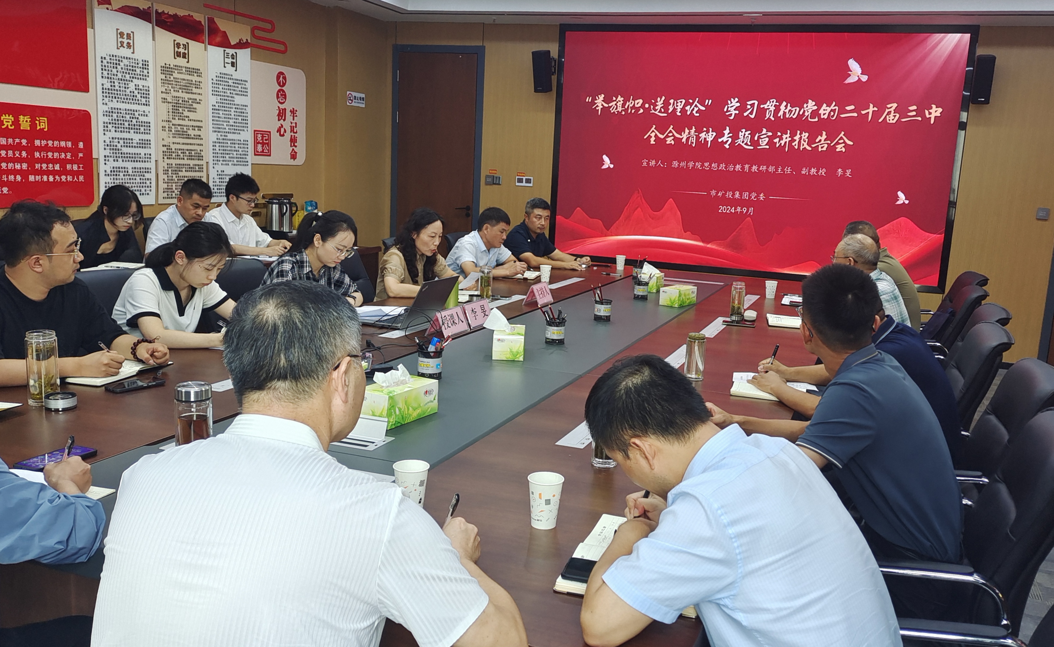 9月14日,“舉旗幟·送理論”學習貫徹黨的二十屆三中全會精神專題宣講活動在市礦投集團舉行。滁州學院思想政治教育教研部主任、副教授李旻作專題宣講報告。市礦投集團本部全體干部職工、各子公司負責人參加會議。
